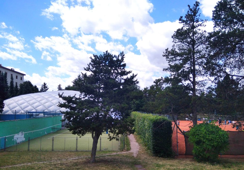 Tréninková zeď se nachází v areálu Slavie u kurtů č. 10 a 11 a nafukovací haly se dvěma kurty: