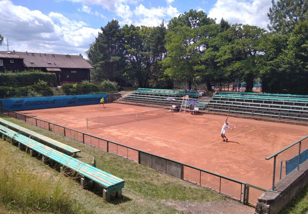 Během letní sezóny od 1.4. do 15.10 trénujeme v Plzni na Borech v tenisovém klubu Slavia, U Borského parku ZDE K dispozici je 15 antukových kurtů, hlavní vstup do areálu je u kurtu č.7. Nejčastěji trénujeme na centrálním kurtu po celý týden.