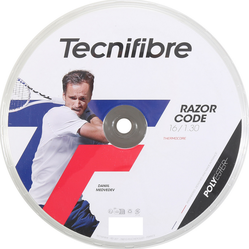 700 Kč TECNIFIBRE Razor Code 1,30 (bílý, kulatý, hraje s ním Iga a Daniil)